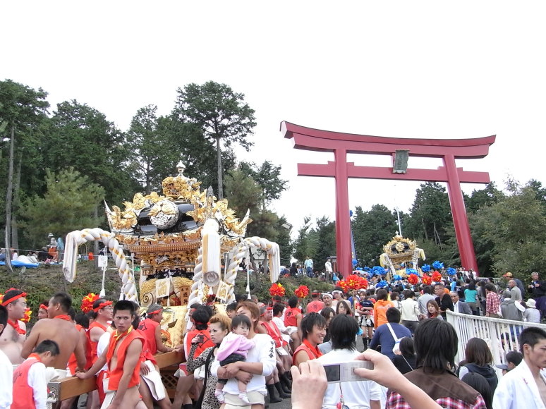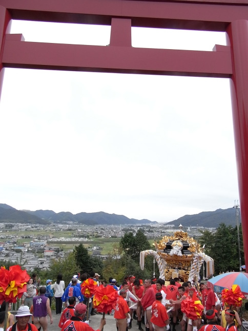 甲八幡宮本宮(08/10/12) (TOPページにもどる) 10月12日12:25。太尾屋台と酒井屋台。 このカメラの位置が急勾配急カーブ、さいごにたしか階段もありましたよね。練り子の皆さんを尊敬します。 反対側から。豊富(とよとみ)の家並みが遠くまで見渡せます。 つまりけっこうな高さだとおもうのですがどれぐらいでしょうか。 臨時駐車場から、13:09。 空には巻雲、広がる田園、甲八幡神社を遠望す。 ちょっと旅気分すら感じます。