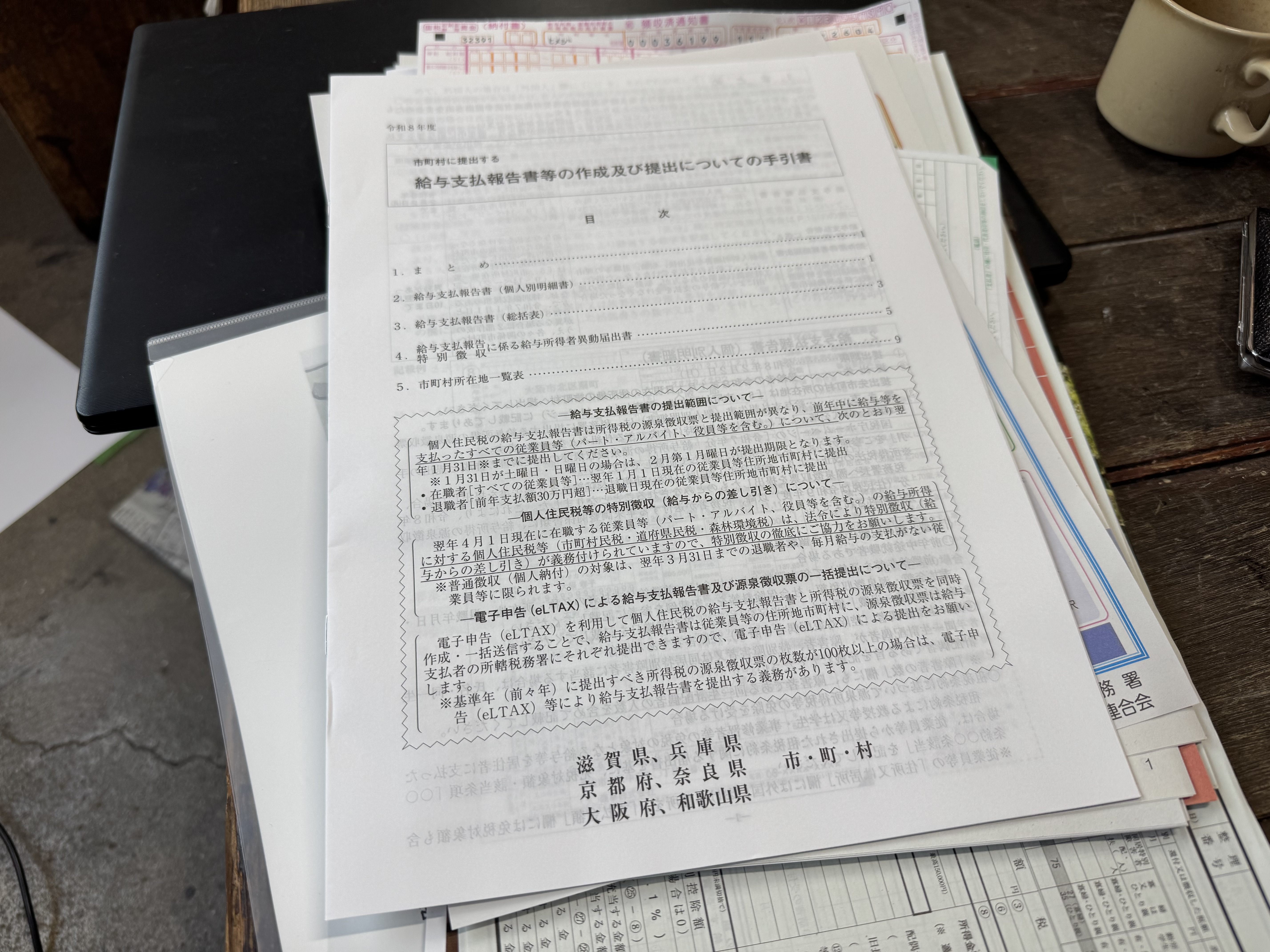 個人事業主として年に三回ほど税金に関する事務仕事があります。春先の自分の申告(確定申告)と、7月1月の従業員の税金の申告です。