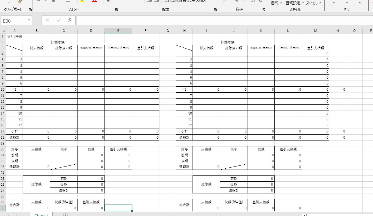 ほんまにあほ、、なんとワタシその表を作ったことを忘れて今回もしょっぱな、手計算を始めてました。たった半年まえなのに。