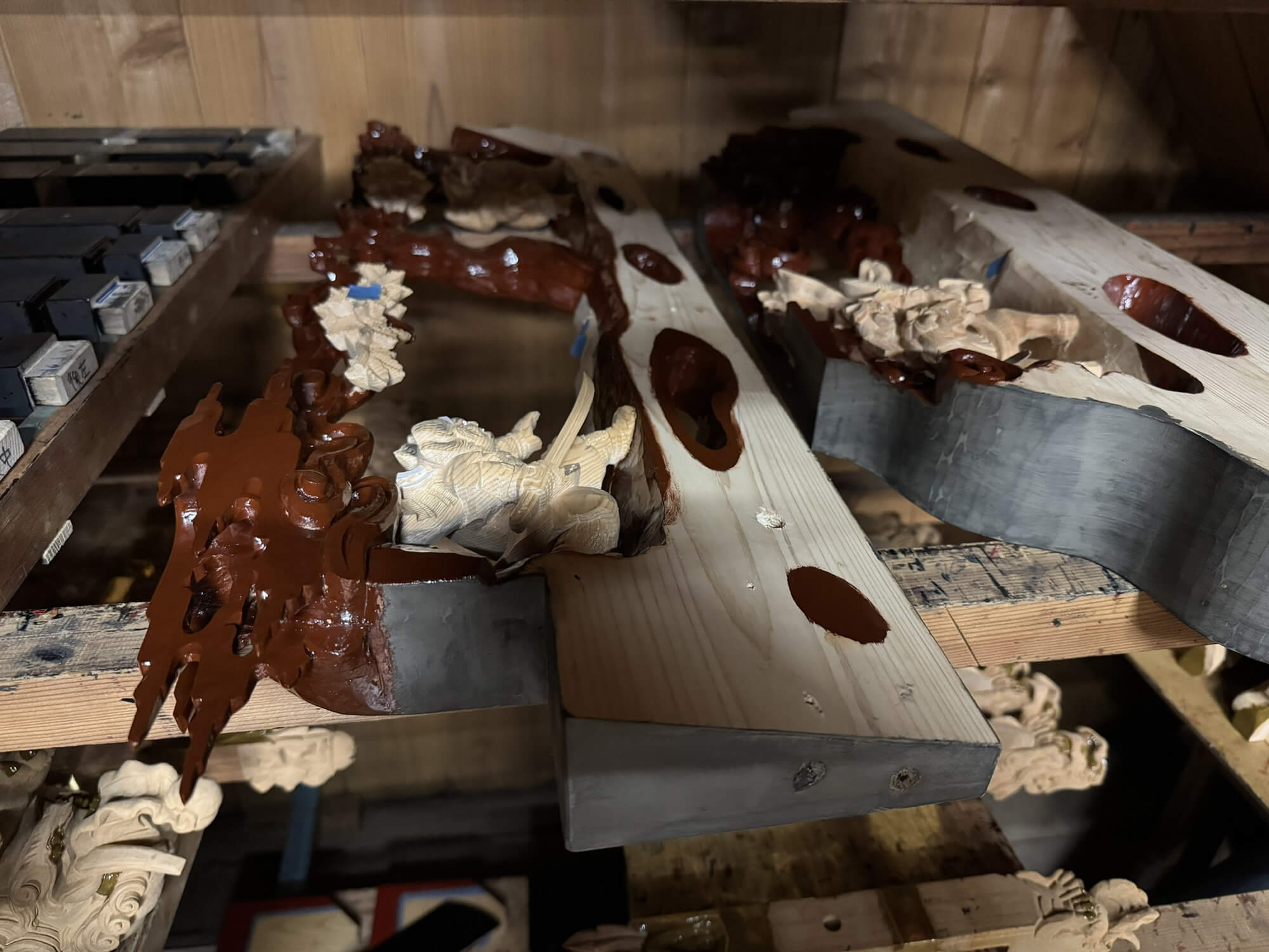 砂川漆工芸 > 作品 > 祭り > 制作実績(令和5年~令和7年) 制作実績令和5年~令和7年画像をクリックすると拡大画像や他の画像をご覧いただけます。 令和7年度 英賀宮町東屋台 英賀宮町東屋台 英賀宮町東屋台 英賀宮町東屋台 井之口屋台 井之口屋台 井之口屋台 宇佐崎屋台狭間彫刻 宇佐崎屋台狭間彫刻 宇佐崎屋台狭間彫刻 宇佐崎屋台狭間彫刻 令和6年度 北山河 北山河 北山河 北山河 亀山屋台 亀山屋台 亀山屋台 亀山屋台 苫編屋台 苫編屋台 苫編屋台 北条南町高欄 北条南町高欄 深志野露盤 深志野露盤 深志野露盤 令和5年度 福崎熊野神社 西野屋台 福崎熊野神社 西野屋台 津田神社 構屋台 津田神社 構屋台 津田神社 構屋台 津田神社 構屋台 津田神社 構屋台 津田神社 構屋台 福崎熊野神社 八反田屋台 福崎熊野神社 八反田屋台 福崎熊野神社 八反田屋台 福崎熊野神社 八反田屋台 福泊屋台狭間彫刻修復 福泊屋台狭間彫刻修復 福泊屋台狭間彫刻修復 福泊屋台狭間彫刻修復 福泊屋台狭間彫刻修復 制作実績(令和4年以前) 砂川漆工芸屋台塗箔年代表 獅子頭の修理 屋台屋根磨き 最高級漆刷毛を導入 旧ページを見る 祭りページにもどる